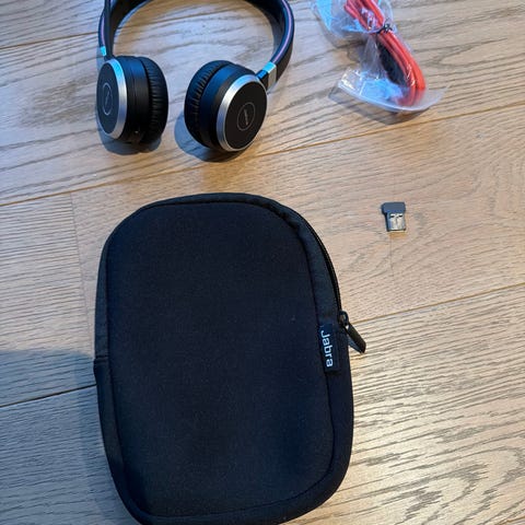 Jabra hodetelefoner med over-ear design og Bluetooth funksjon. Funker fint å koble til eksterne enheter via Bluetooth. Har vært lite brukt. Uten dongle.