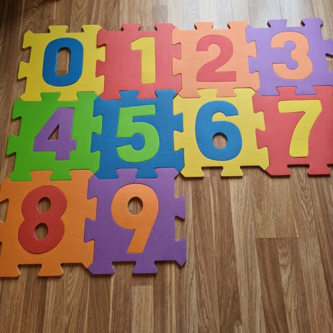 Lekematte/puslespill/hinderløype. Denne lekematten kan brukes til mye forskjellig. Myk lekematte med tallene 0-9.