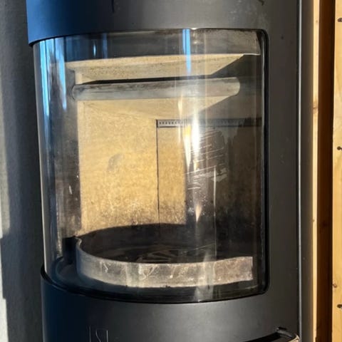 Selges med varmelagring stener som legges i toppen og holder på varmen i mange timer etter fyring