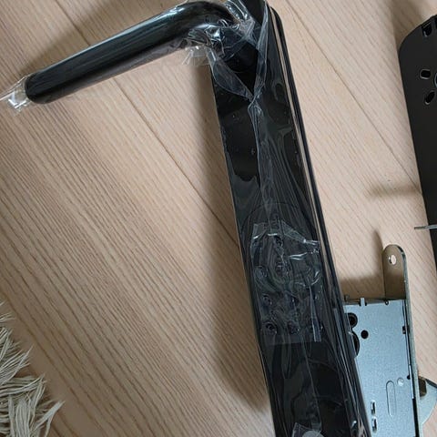 Den er brukt på tynn dør. Selges uten sluttstykke.