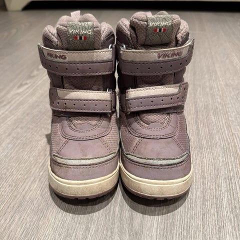 Viking barnesko for jente i størrelse 26. Skoene er lilla og har borrelås for enkel justering. De er laget for barn og egner seg til daglig bruk.