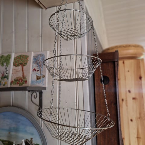 Vintage matboks/piknikboks i blikk, ofte kalt "nisteskrin". Str L 24,5, B 15,5, H 13 cm.