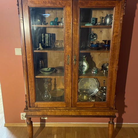 Antikk Vitrineskap i Tre med Glass