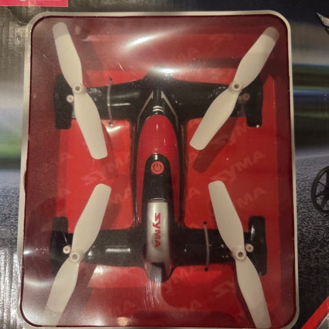Royal Fly Drone med fjernkontroll og propellbeskyttere. Inkluderer ekstra propeller og tilbehør. Egnet for innendørs og utendørs bruk.