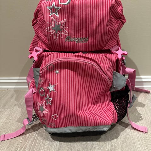 Fin og pent brukt skolesekk fra Bergans. Brukt av jente fra 3. til 5. klasse.