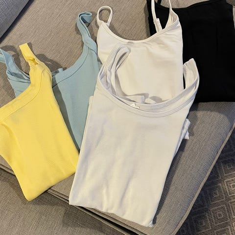 Selger flere jakker i lyse og nøytrale farger.