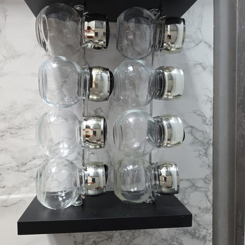 Lei av å famle og lete etter ting du trenger på kjøkkenet? Eller å velte og rote når du skal hente frem ting som står langt bak i skapet? Denne hylletrappen er genial! Bruk hylleinnsatsen til krydder, hermetikk eller oljer på kjøkkenet, eller hudpleieprodukter på badet.