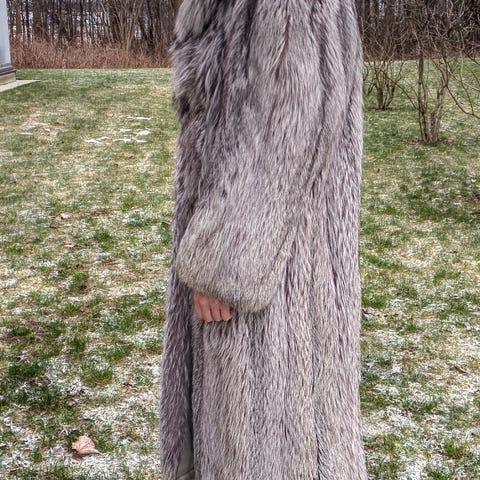 Selger en sølvrev kåpe fra 80-tallet, laget av Sigurd Bj. Iversen i Drammen. Nesten ikke brukt. Innvendig snøringsbånd for innstramming av liv , om ønskelig. Det følger også med et pannebånd.