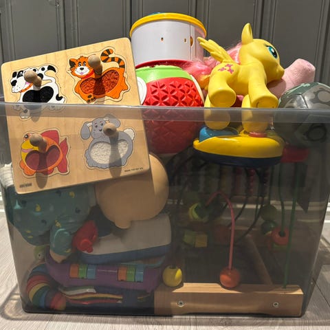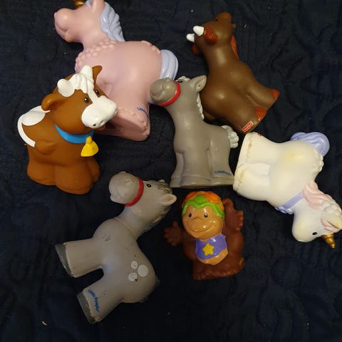 Stor lekepakke, som inneholder alt på bildet, inkl. hoppe ku, ikea telt, Little people tårn med 2 biler. KIkea telt har svake flekker på, muligens kan vaskes bort.