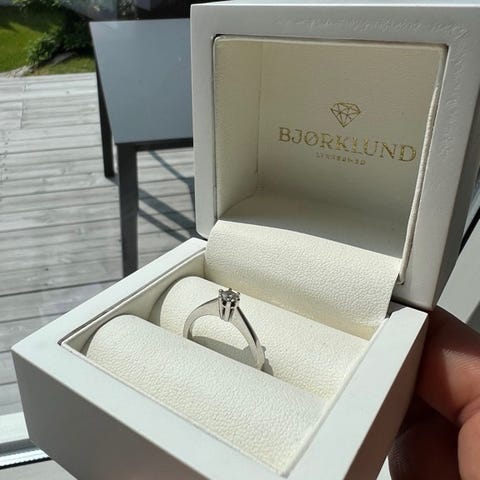 En søt diamant ring som ikke bli brukt lenger, da jeg foretrekker gull i gult farge.