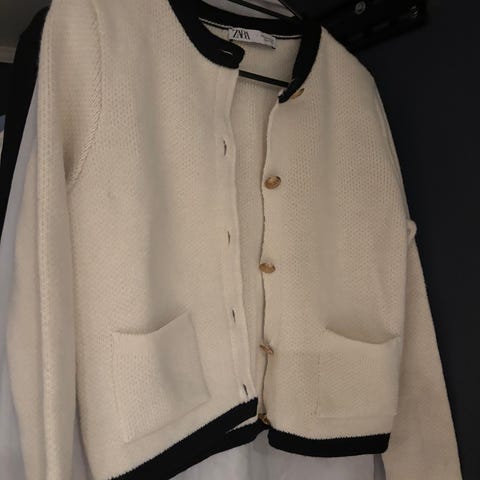 Zara cardigan i størrelse L for kvinner, laget av bomull. Fargen er grå, og plagget har knappelukking foran. Passer til hverdagsbruk og kan kombineres med ulike antrekk.