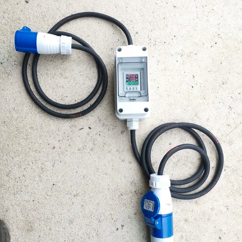 40 meter tilkoblingskabel. Standard stikk for tilkobling campingvogn eller bobil. uttak for 240 på utsiden.