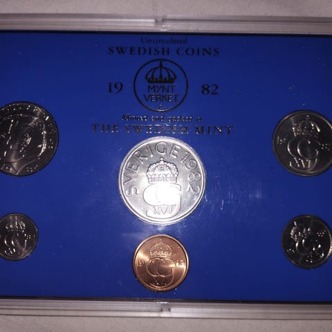 Svensk myntsett totalt 12 stk., fra 1982 - 93.