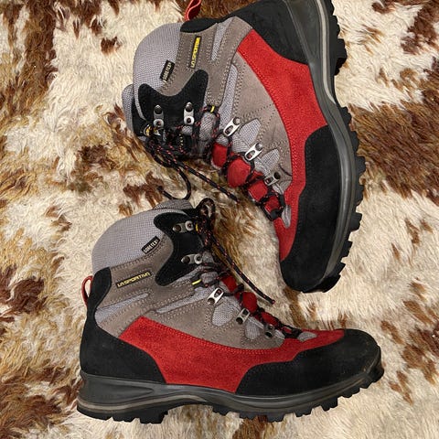 La Sportiva lette tursko. Gore tex. Str. 47. Disse er litt små i størrelse,så jeg vil si de er 46. hvis vi sammenligner med Ecco. Det er slipt av på sålen på hæl. Dette er gjort av skomaker,for å få en mer avrundet hæl. Lite brukt. Hele og fine. Selges rimelig, da jeg ikke får plass til innleggssåler i de. Nypris var 2300 kr.