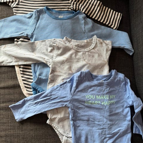 Stor, billig klespakke med diverse tøy i størrelse 68 (enkelte plagg er i størrelsen under/over, men brukt når barnet brukte størrelse 68).