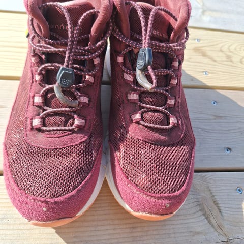 Skoene er laget med slitesterkt materiale og har en solid såle,