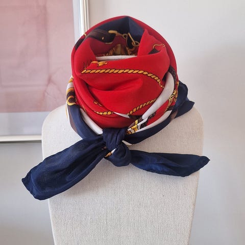 Ingen tekstilkapp som kan fortelle hva skjerfet er laget av.