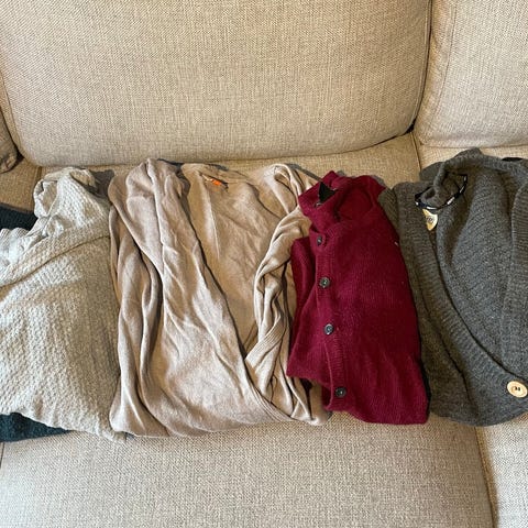 Skjerf med et par tråder på avveie (som synlig på bildene).