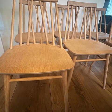 En norsk design stol i håndmalt sort bøk, med kryssede spiler i ryggen og tradisjonelt håndverk.