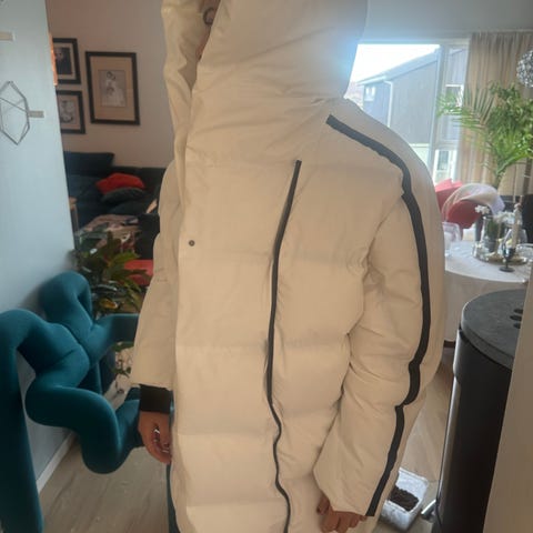 Selges fordi den blir for varm til meg og blir for råflott å ha den hengendes bare for å bruke den på de kaldeste januardagene. Så håper den kan finne et nytt hjem hos noen som er på utkikk etter en skikkelig varm kåpe.
