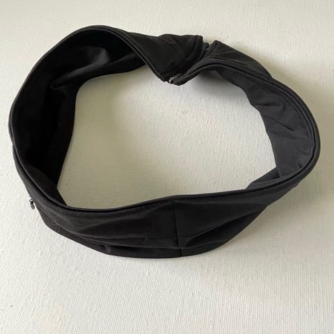 Løpebelte med justerbar stropp i svart farge. Designet for å holde små eiendeler sikkert under trening eller løping. Laget av slitesterkt materiale som tåler aktivitet.