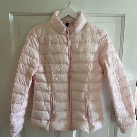 Ubrukt tynn dunjakke fra Freequent i str L. Fargen er lys beige, grå på innsiden. Lommer med glidelås. Lett og tar svært liten plass. Ny pris 599kr