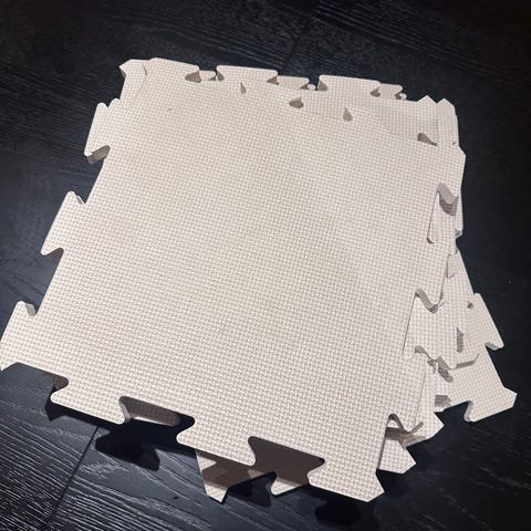 Pent og lite brukt lekematte type puslespill, vært som underlag for babygym stående hos ungenes besteforeldre.