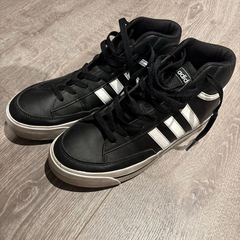 Adidas Sneakers joggesko i størrelse 42. Fargen er svart med hvite detaljer. Brukt noen måneder pga vokste fra skoene.