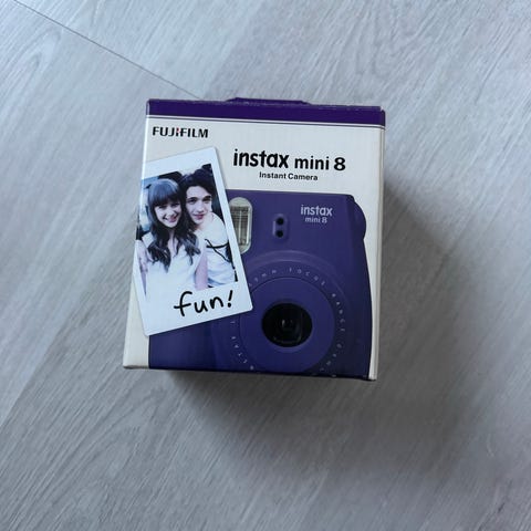 Fujifilm Instax Mini polaroidkamera i rosa farge. Kameraet tar umiddelbare bilder som printes ut. Kommer med to gratis pakker, med 20 bilder per.