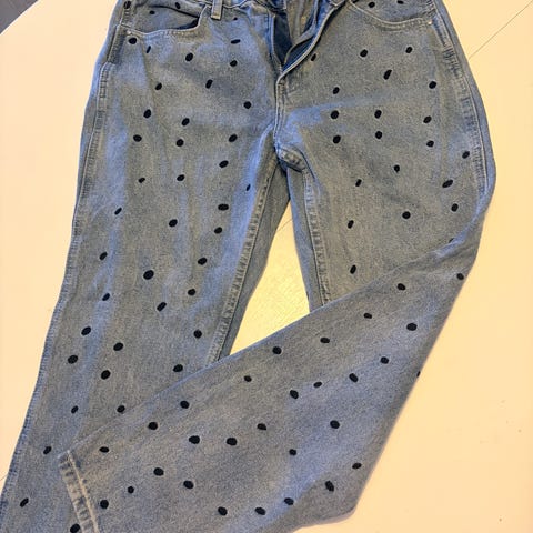 En 5-lommersjeans i bomullsdenim uten stretch som i begynnelsen føles fast, men som med bruk blir mykere og ledigere. Rette ben, figurnær midje og normal passform over hofter og lår. Ekstra høy midje med supermyk linning for en behagelig passform, slitte detaljer og gylf med knapp og glidelås. Ankellang, designet til å stoppe akkurat ved ankelkulen. Buksen du tar frem igjen og igjen.
