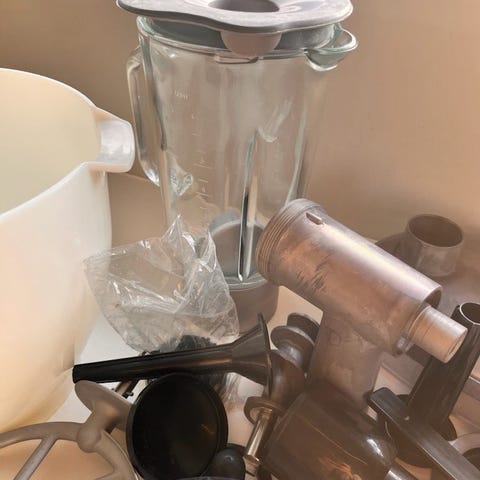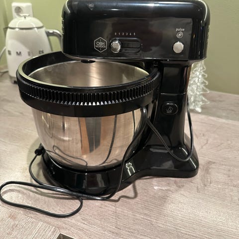 OBH Nordica Hercules Chili kjøkkenmaskin med rustfri stålbolle. Inkluderer visper og eltekroker. Maskinen har justerbar hastighetskontroll. Noen bruksmerker og mindre skader på plastdelen under bollen er synlige. Fungerer som den skal, må bare passe på bollen mens man elter deig.