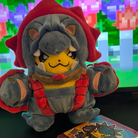 Utrolig søt og myk Pikachu bamse, kledd ut som Mega Lucario 🤩