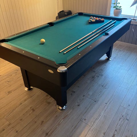 Selger et solid biljardbord i god stand. Bordet er av profesjonell kvalitet og gir en helt annen spillefølelse enn lette hobbybord.