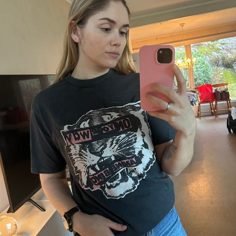 Anine Bing T-skjorte i hvit farge, størrelse XS, laget av bomull. Designet for kvinner. Oversized fasong.Nypris: 1695kr.