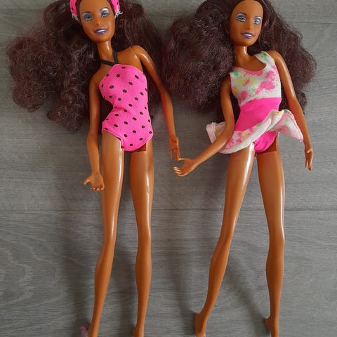 Vintage Barbie dukker. Selges kun samlet som de er for kr 1100. Kan sende mot at kjøper betaler frakt Norgespakke med sporing kr 140 kommer i tillegg. Sender kun med posten eller hentes på Dokka.