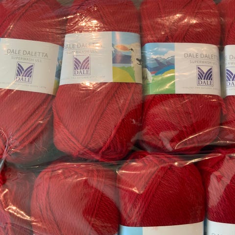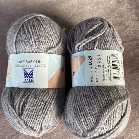 23 nøster Dale Superwash ullgarn selges 290kr + porto (69kr med postnord). Farge hvit, 2 innfarginger, men ser ikke forskjell.