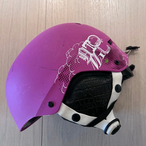 Pent brukt hjelm til alpint, slalåm eller skøyter. Str 51-55 cm. Hjelmen har bruksmerker, men ingen skader.