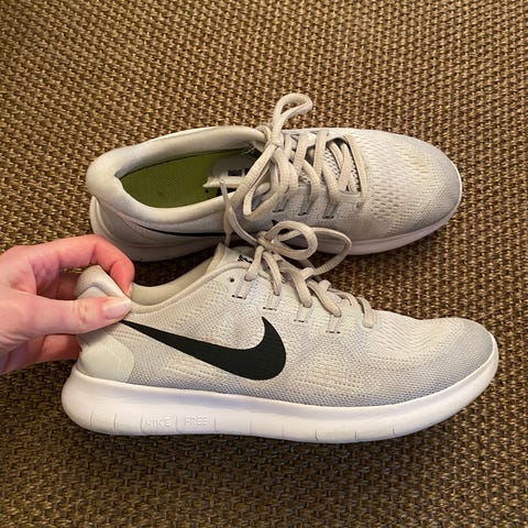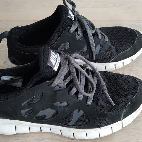 Nike Sneakers joggesko i størrelse 38. Skoene har en kombinasjon av svart og lilla farge, med hvit såle. Materialet er en pustende tekstil med en fleksibel gummisåle. Egnet for daglig bruk og trening. Kun brukt innendørs på studio