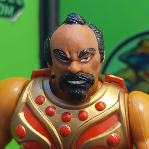 Selger en fin Grizzlor fra He-man og Masters of the Universe utgitt i 1984. Følger med chest armor men uten våpen.