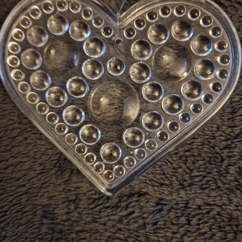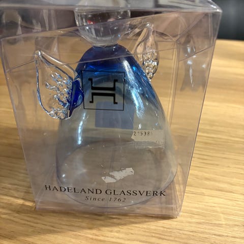 Solfanger, Glassanheng med smilende ansikt, laget av klart glass. Hadeland Glassverk. Fikk i gave ca 1970. Original skinn snor. Fremstår som ny.