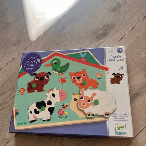 Helt ny/uåpnet Djeco Chez Moo 3-lags puslespill i tre. Ny pris hos Babysho er kr 335.