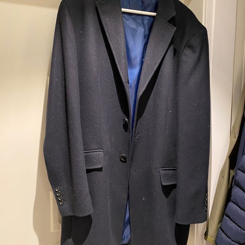 En meget pen og lite brukt Bugatti herrefrakk med avtagbart fór selges. Finner ingen størrelsestag, men anslår L/XL.