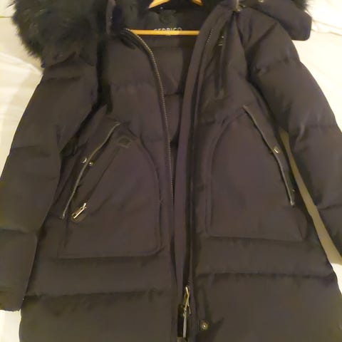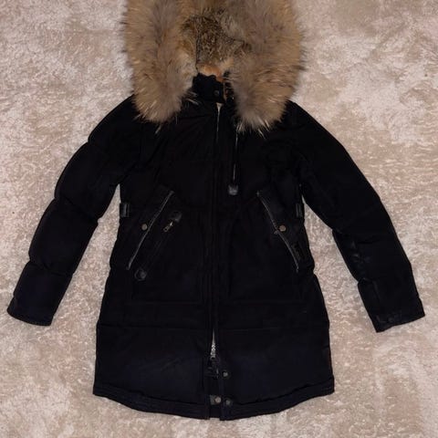 Str xs. Avtagbar pels og hette. God og varm jakke, men blir for lite brukt derfor jeg selger den.