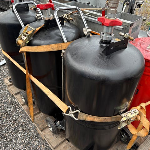 Gassvarmer med plass til 2 stk gassbeholdere med ind.kopling. Termostat fra 2 til 24C'.
