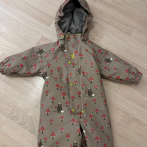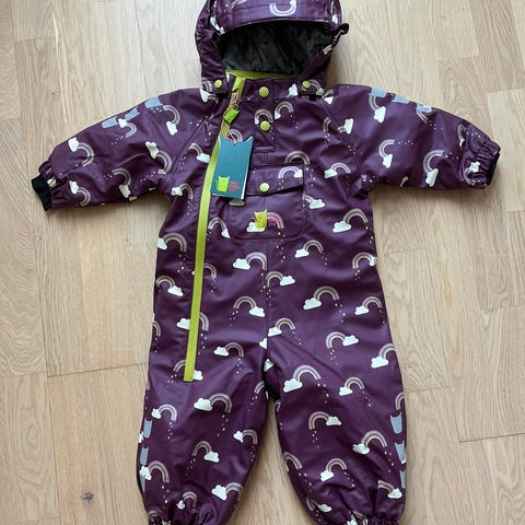 Hel og pen babyregndress selges. Lite brukt, og ingen merkbar slitasje eller hull. Ikke vasket i vaskemaskin.