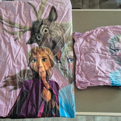 Søtt sengesett fra Blafre. Lite brukt. Både dyne- og putetrekk har en brun og en rosa side.