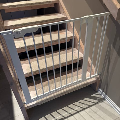 BabyDan Barnesikring i metall, hvit farge. Designet for å sikre barn i hjemmet ved å blokkere av områder. Passer for innendørs bruk.