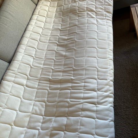 Så godt som ubrukt . Overmadrass er 75 cm bredde. Pris overmadrass kr 500. Madrass Dream zone kr 1000 . Samlet salg kr 1400 for begge.