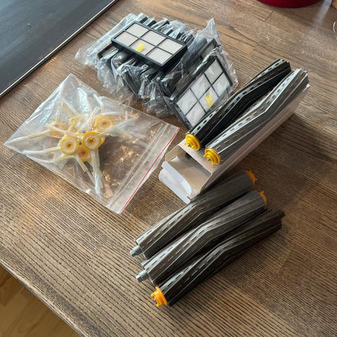 Selger vår robotstøvsuger, fungerer som bare det, har ikke bruk for den lenger. Kjøper får med et replenishment kit på kjøpet og ladestasjon såklart. Vi har brukt den i 5 mnder, men kjøpt brukt så tipper den er mellom 1-2 år gammel.