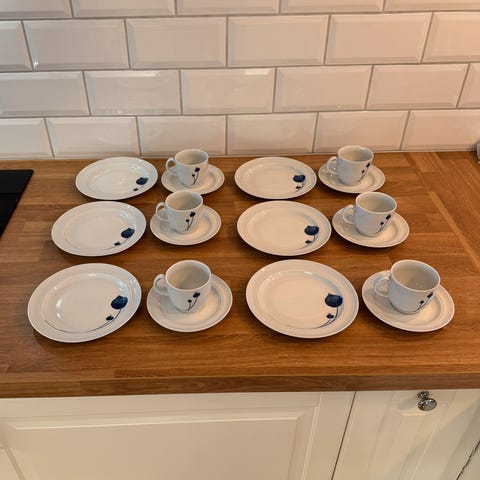 Vintag keramikkservise til 6 personer i en vakker blå farge
